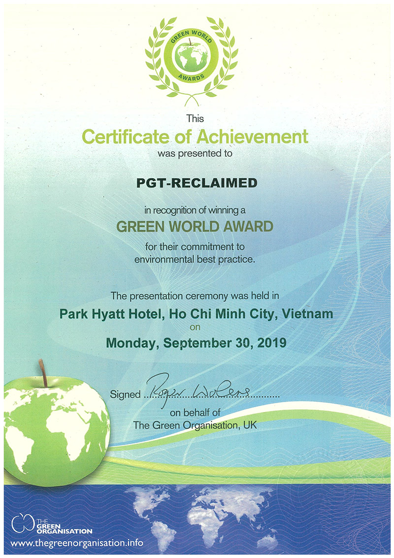 PGT-RECLAIMED products don’t just look good, but also make you feel good by knowing we are doing something good for the environment.